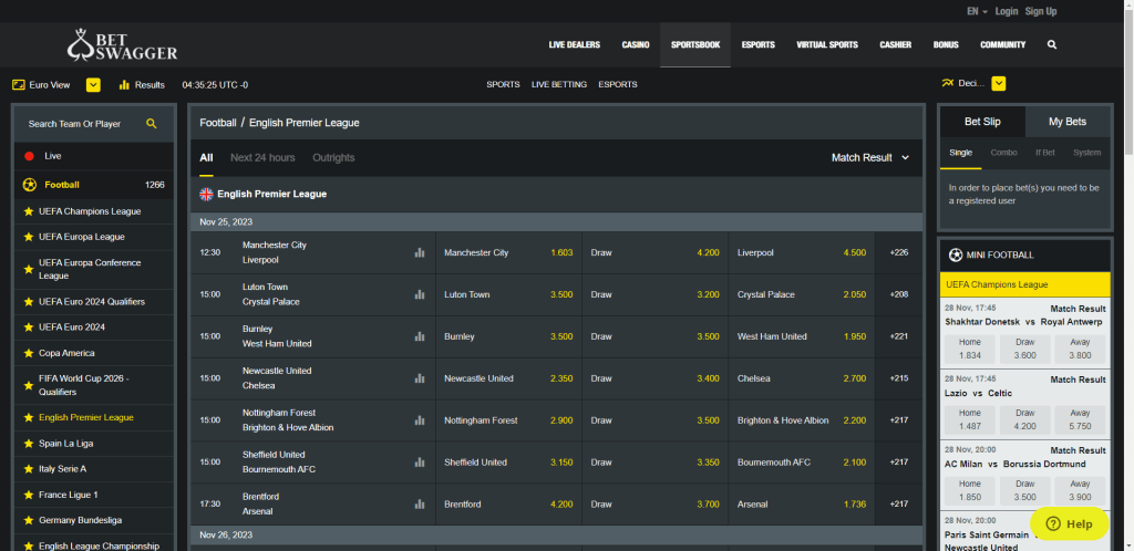 Football enthusiasts will be delighted by the extensive selection of football matches available for betting at Bet Swagger. From major leagues to international tournaments, you can place bets on your favourite teams and players.