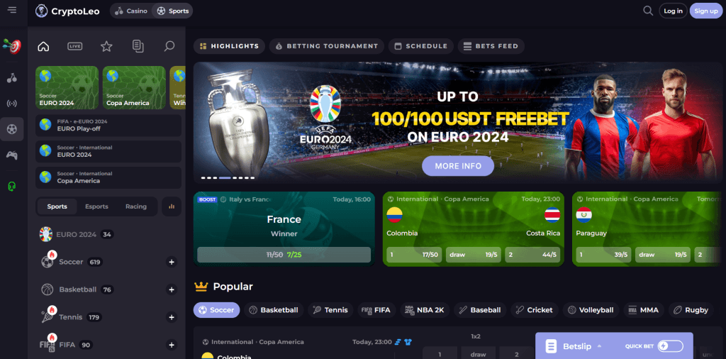While CryptoLeo’s core focus lies in its exceptional casino offerings, the platform has expanded its horizons to cater to a broader range of gaming enthusiasts. CryptoLeo is also one of the casinos accepting UK players for its live sports betting offerings. The integrated sportsbook section provides a comprehensive betting experience, covering over 35 sports, including popular disciplines like soccer, tennis, basketball, hockey, and cricket, as well as emerging esports titles like Counter-Strike: Global Offensive, Dota 2, and League of Legends.