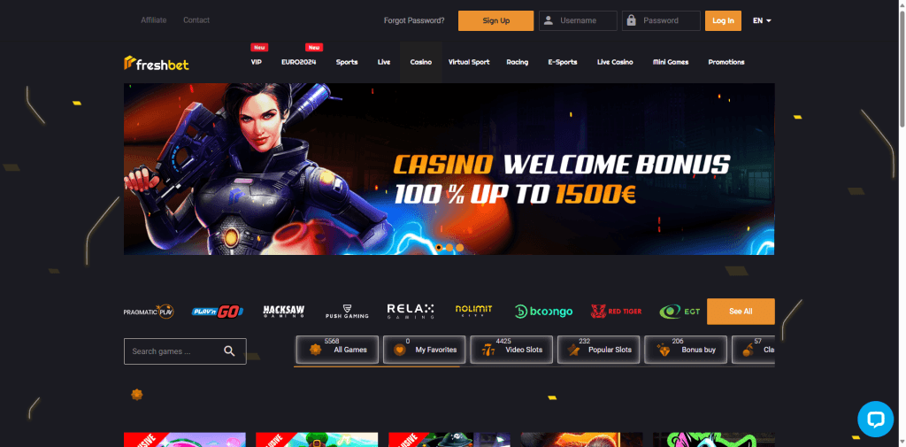 Freshbet Casino features an extensive collection of online games from leading developers like NetEnt, Play’n GO, Microgaming, and Pragmatic Play. Here’s a closer look at some of the top games: