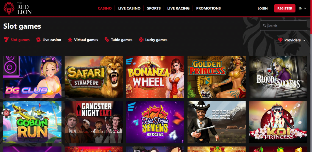 The Red Lion Casino boasts a diverse game selection, housing over 2,500 slot and game titles from leading providers like NoLimitCity, Play’n Go, Relax Gaming, Big Time Gaming, Pragmatic Play, NetEnt, Microgaming, and other leading brands. The casino’s library includes various types of slots, table games, sports betting and live games, catering to different players’ preferences.