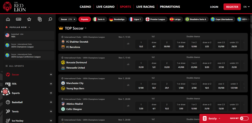 The Red Lion Casino also caters to all sports betting enthusiasts. The sportsbook section offers various betting options, including football, basketball, boxing, UFC, horse racing cricket, and more. The Red Lion casino also provides live streaming services for a seamless live betting experience.